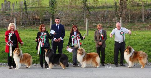 After waiting for Mr Wilburg to complete his second breed the Collie Club of Wales Championship show got under way with breed specialist judge Brian Hawkins (Beldones).Vinnie was placed 4th Mid-limit dog, Odin unplaced in Open dog and Miami was placed 3rd in Puppy dog. Gypsy again was the little star winning the Puppy bitch class. In the bitch challenge she was then awarded Best Puppy bitch. We stayed to challenge the Best Puppy Dog and were over the moon to be awarded Best Puppy in Breed. It then fell to us to challenge the Best Puppy Smooth. To our amazement both the rough judge and the smooth judge, Josh Blackburn (Erjon), agreed to award Gypsy Best Puppy in Show. On cloud 9 we drove home and arrived back at 11pm.